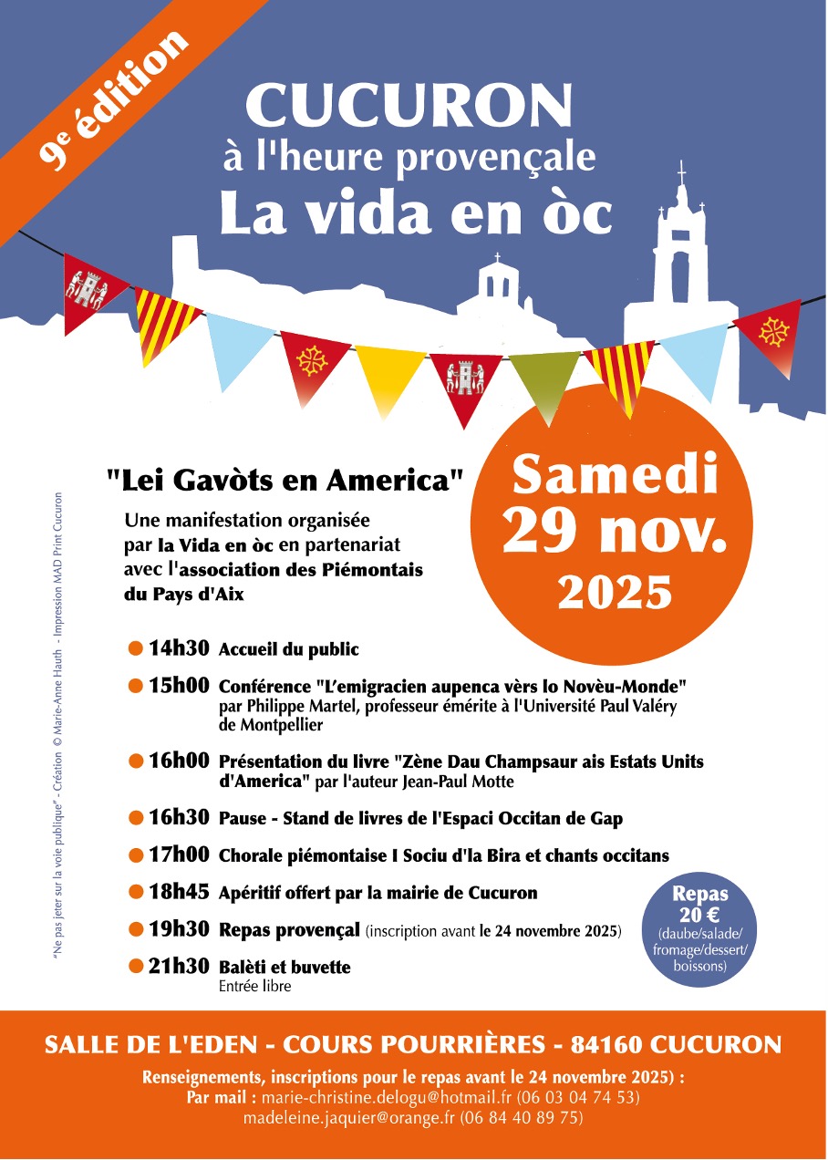 par l’Association « La Vida en Oc », en partenariat avec l’Association des Piémontais du Pays d’Aix,